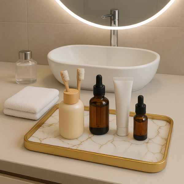 Sua bancada do banheiro, lavabo ou penteadeira parece desorganizada com perfumes, cremes e acessórios espalhados? Você busca uma forma de agrupar seus itens essenciais com um toque de luxo sem gastar uma fortuna?