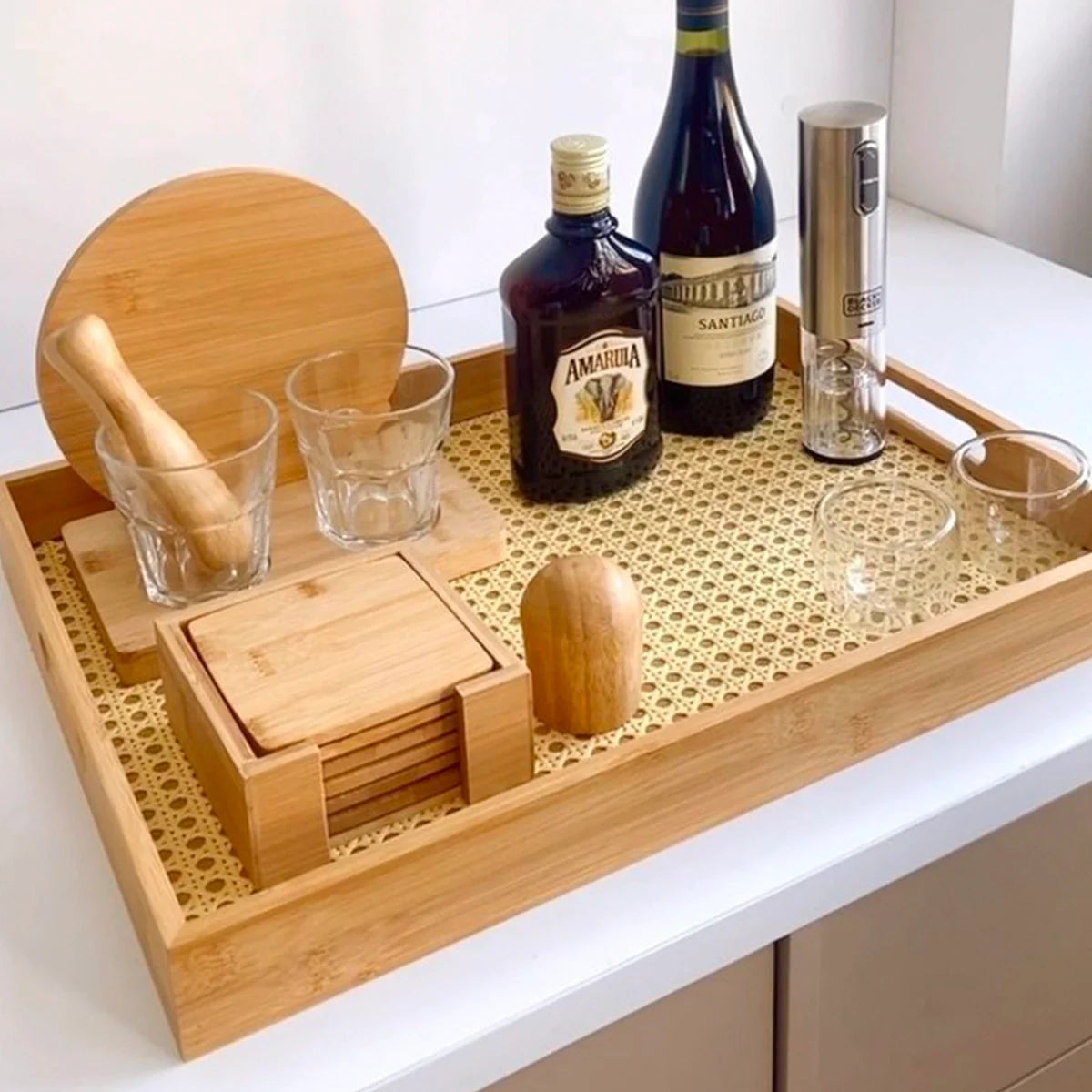 Bandeja Retangular em Bambu e Palhinha indiana Essenza Natural