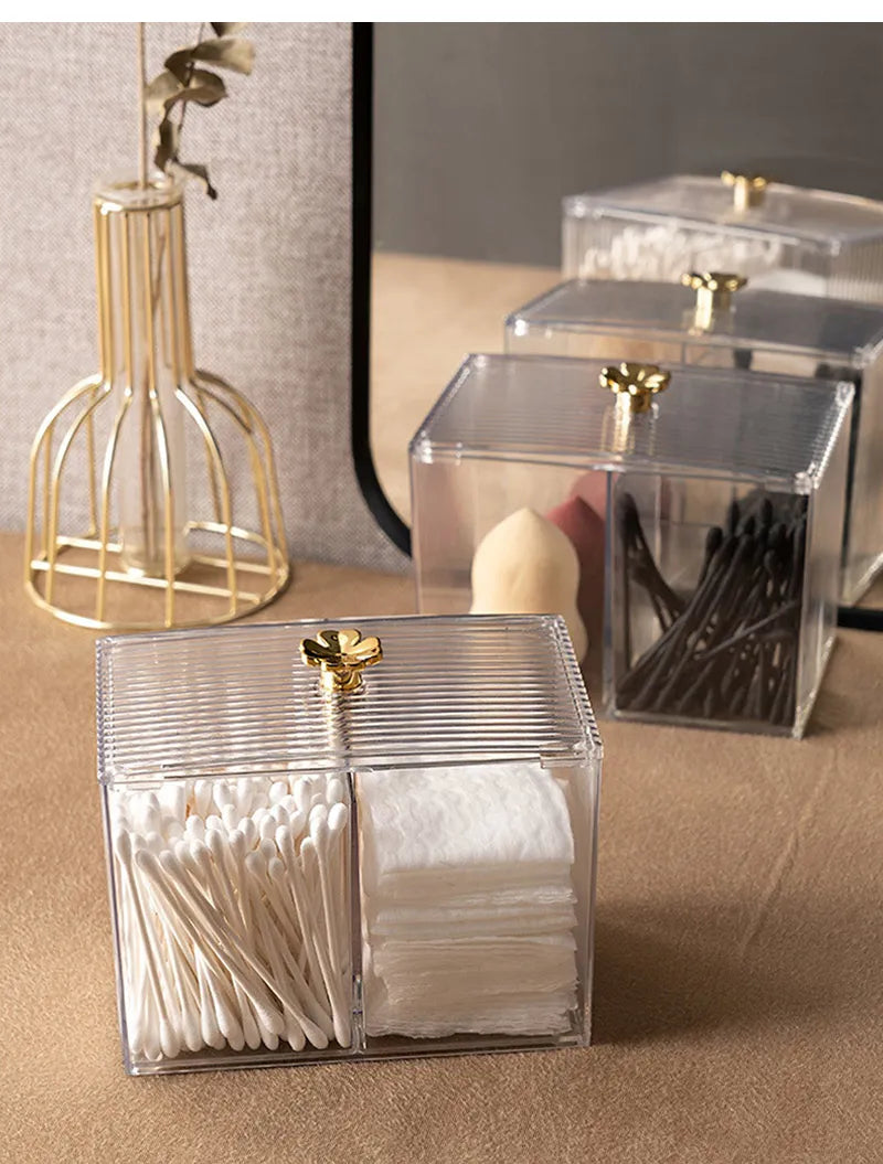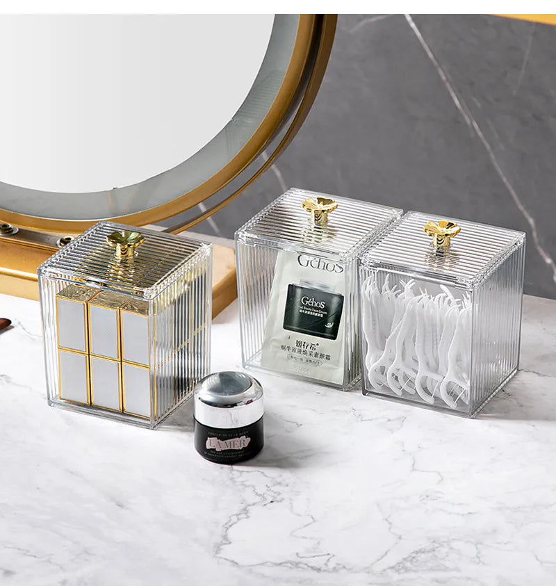 Desenvolvida para atender às necessidades específicas do seu espaço de beleza, esta caixa quadrada é perfeita para armazenar cotonetes de algodão de forma organizada. Seu design transparente não só permite uma visão clara dos conteúdos, facilitando a localização dos itens desejados, mas também adiciona um toque moderno e sofisticado à sua área de cuidados pessoais.