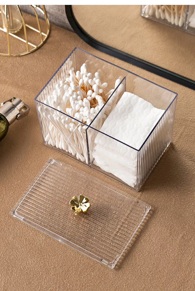 Eleve a organização do seu espaço com a Caixa Organizadora Transparente - Porta Algodão e Cotonete, uma solução brilhante para o armazenamento de maquiagem e itens essenciais de banheiro. Este organizador de armazenamento não oferece apenas praticidade, mas adiciona um toque de moda ao seu ambiente.