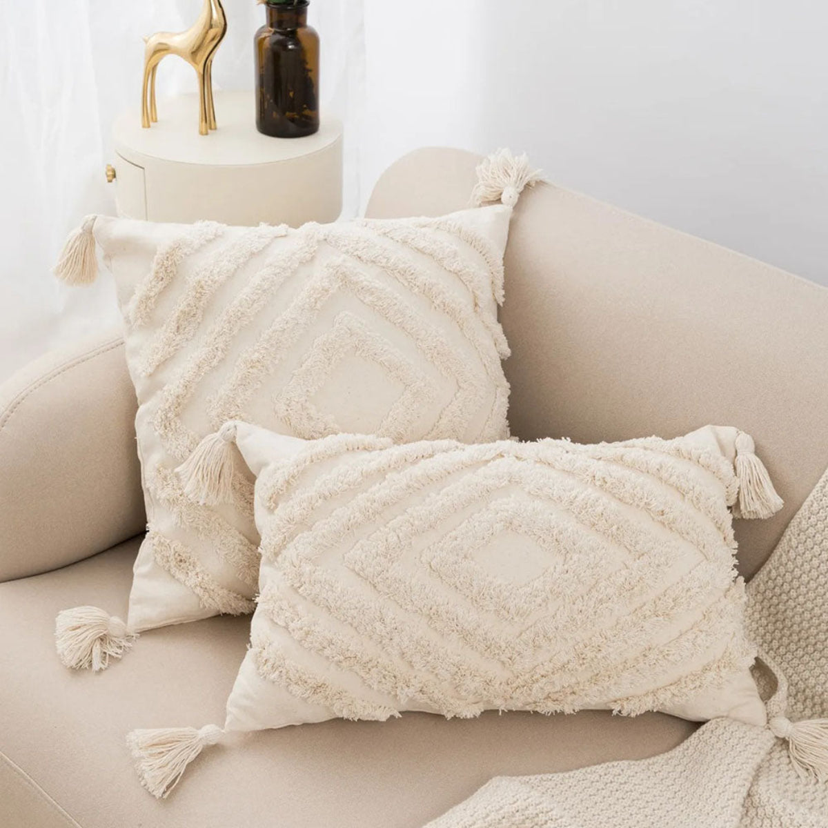Descubra o prazer de se aconchegar em um sofá. A Capa de Almofada Boho Chic com Franja bege não só embeleza seu espaço com elegância, mas também traz consigo uma sofisticação e charme.