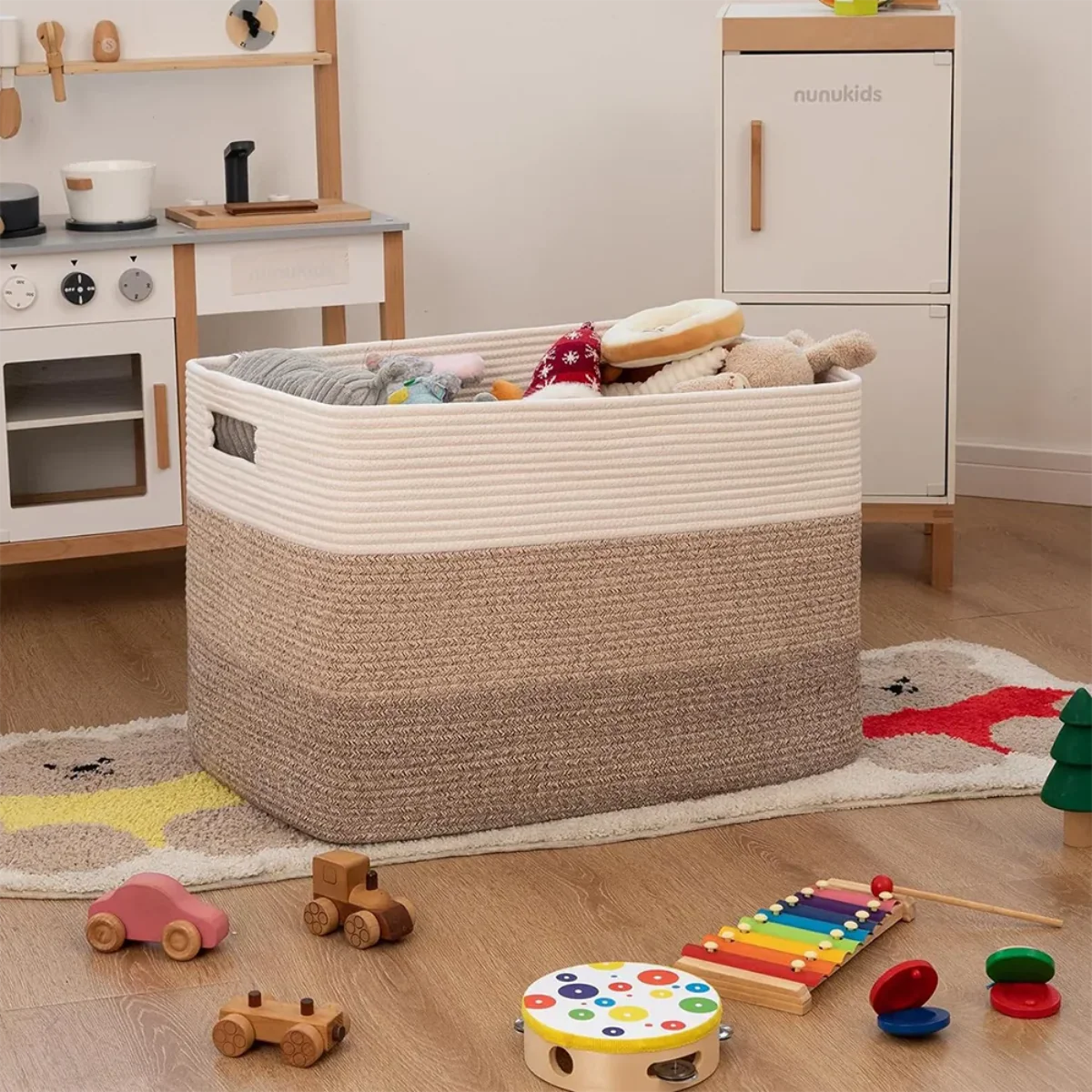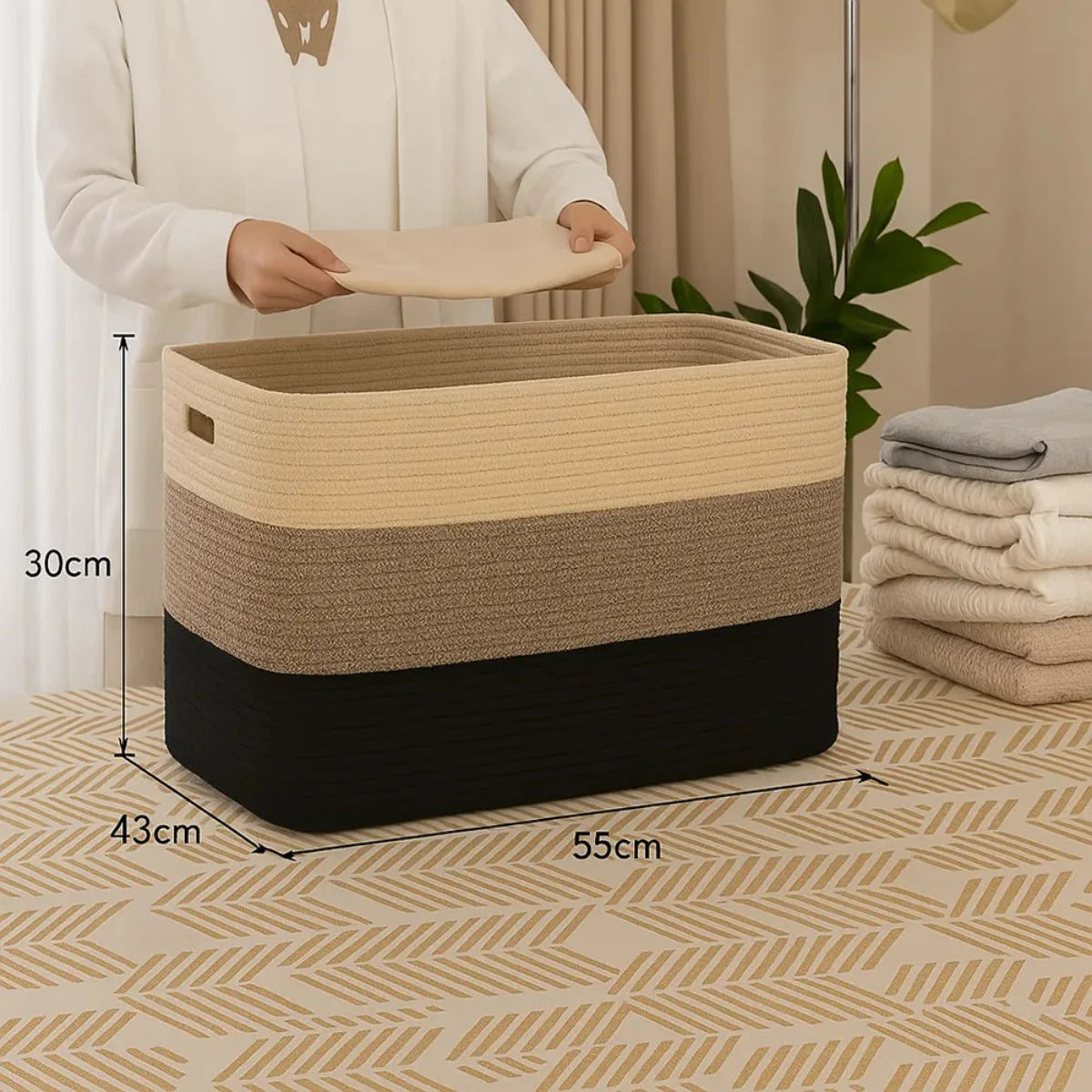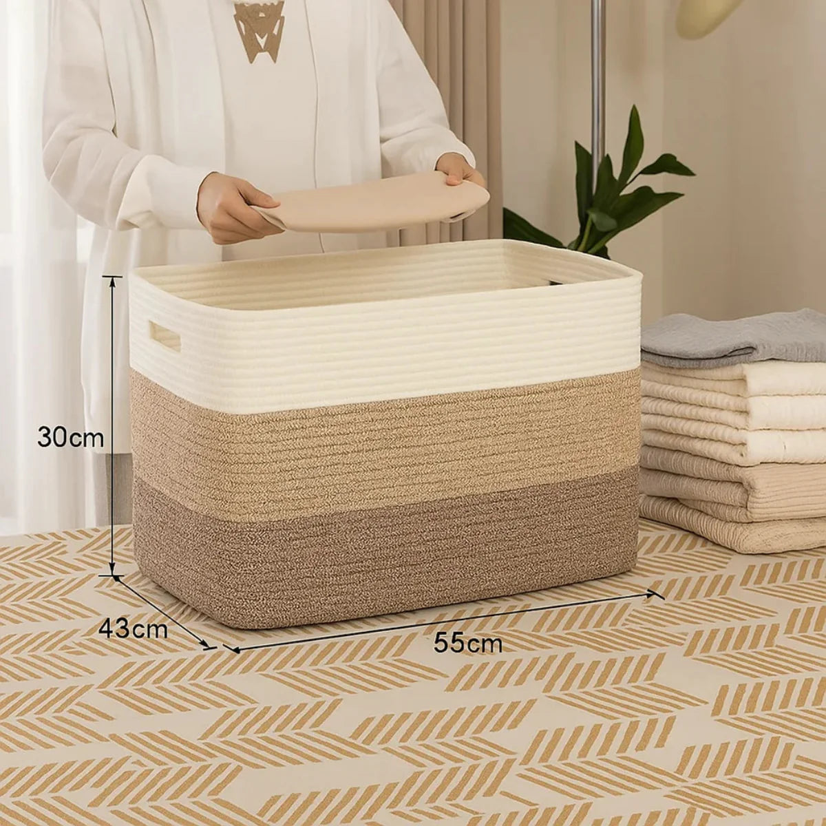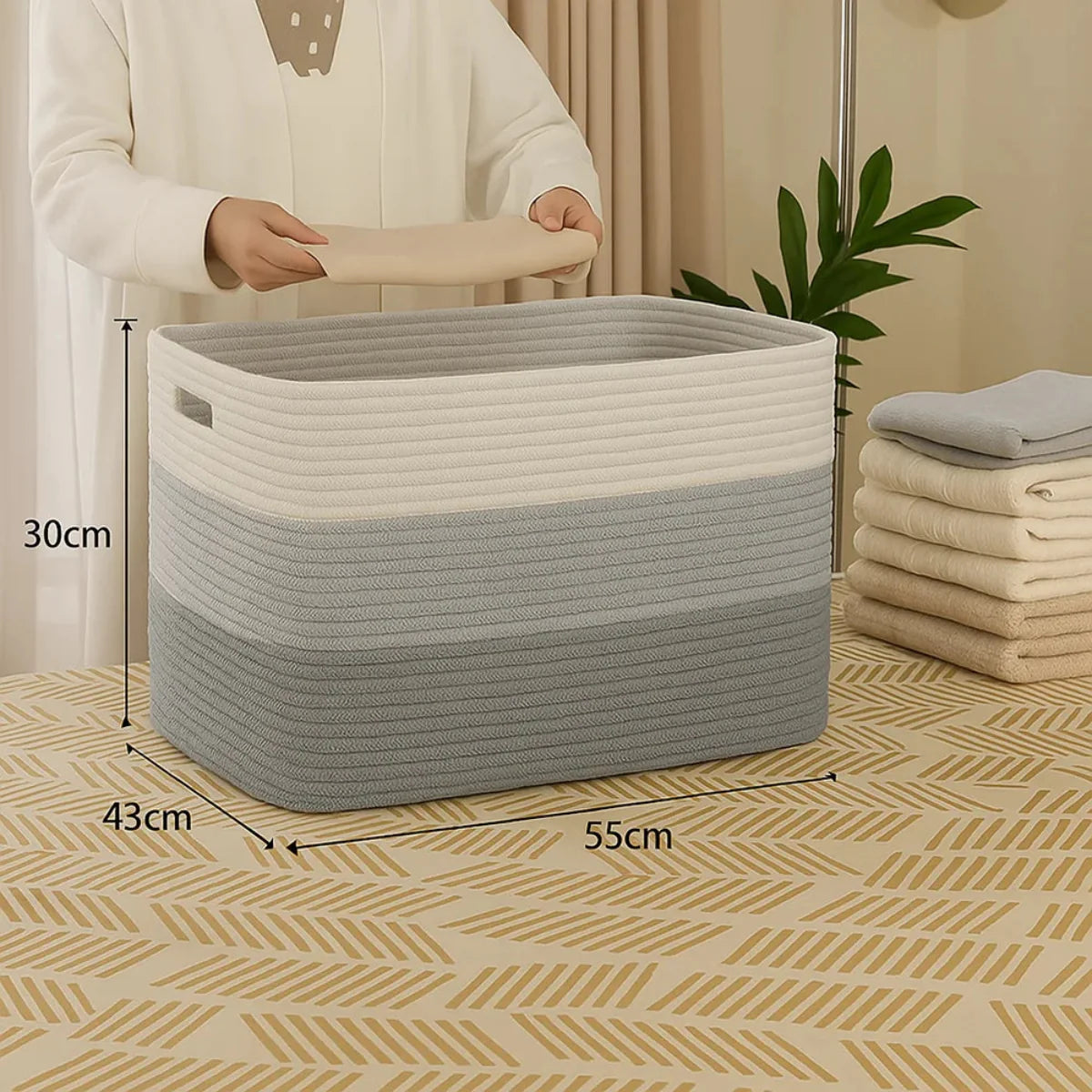 Com um acabamento em corda de algodão e tons suaves que combinam com qualquer decoração, o Cesto de Armazenamento Soft é ideal para armazenar brinquedos, roupas, mantas, toalhas ou objetos do dia a dia. Espaçoso, resistente e com alças laterais para facilitar o transporte, ele é perfeito para manter a casa organizada com delicadeza e modernidade.