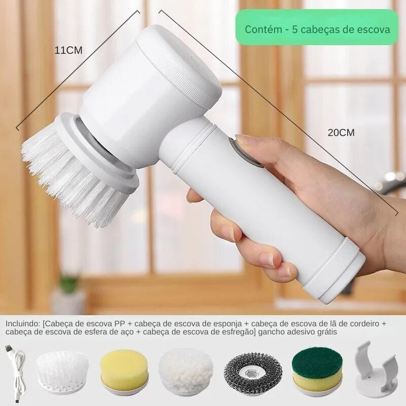 Quantidade de Cabeças de Escova: Inclui 5 cabeças de escova de limpeza para atender a diversas necessidades de limpeza.