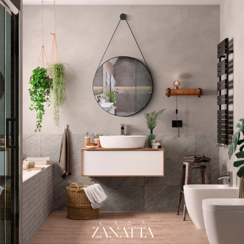 💡 Amplia e Ilumina: Além de funcional para conferir o visual, espelhos redondos como este ajudam a ampliar visualmente o espaço e a refletir a luz, tornando o ambiente mais claro e arejado.