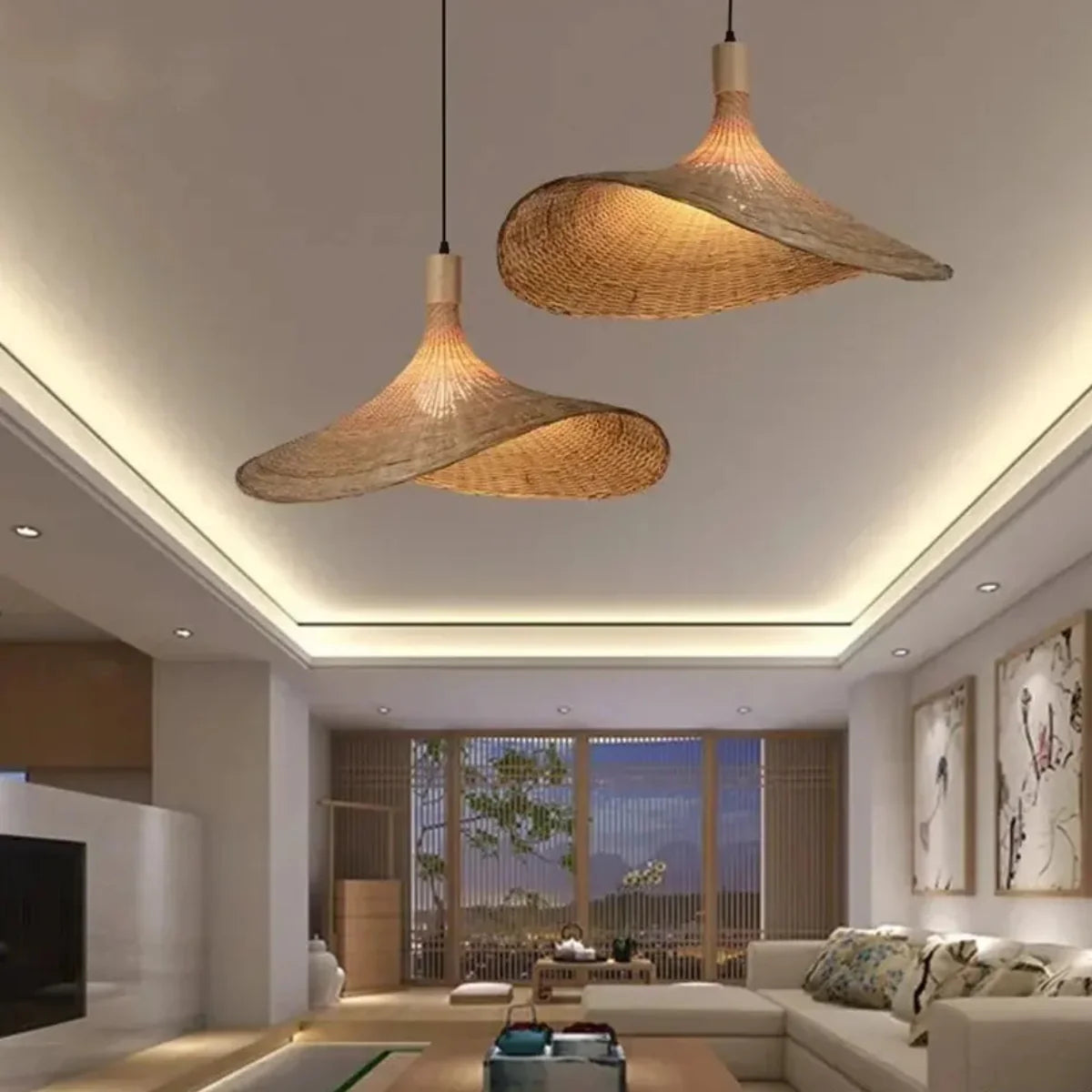Kit 2 Luminárias Pendente de Rattan Hygge Hat