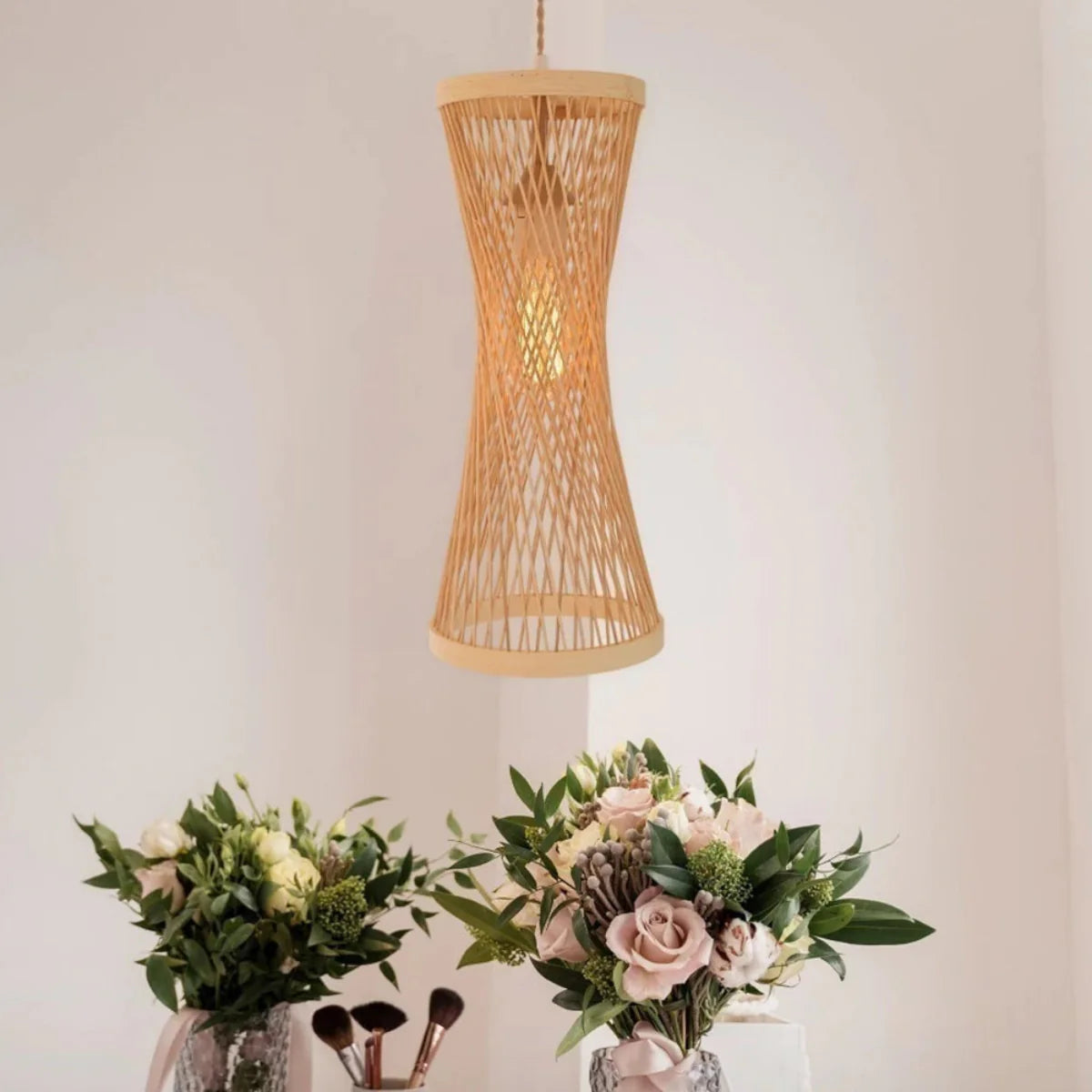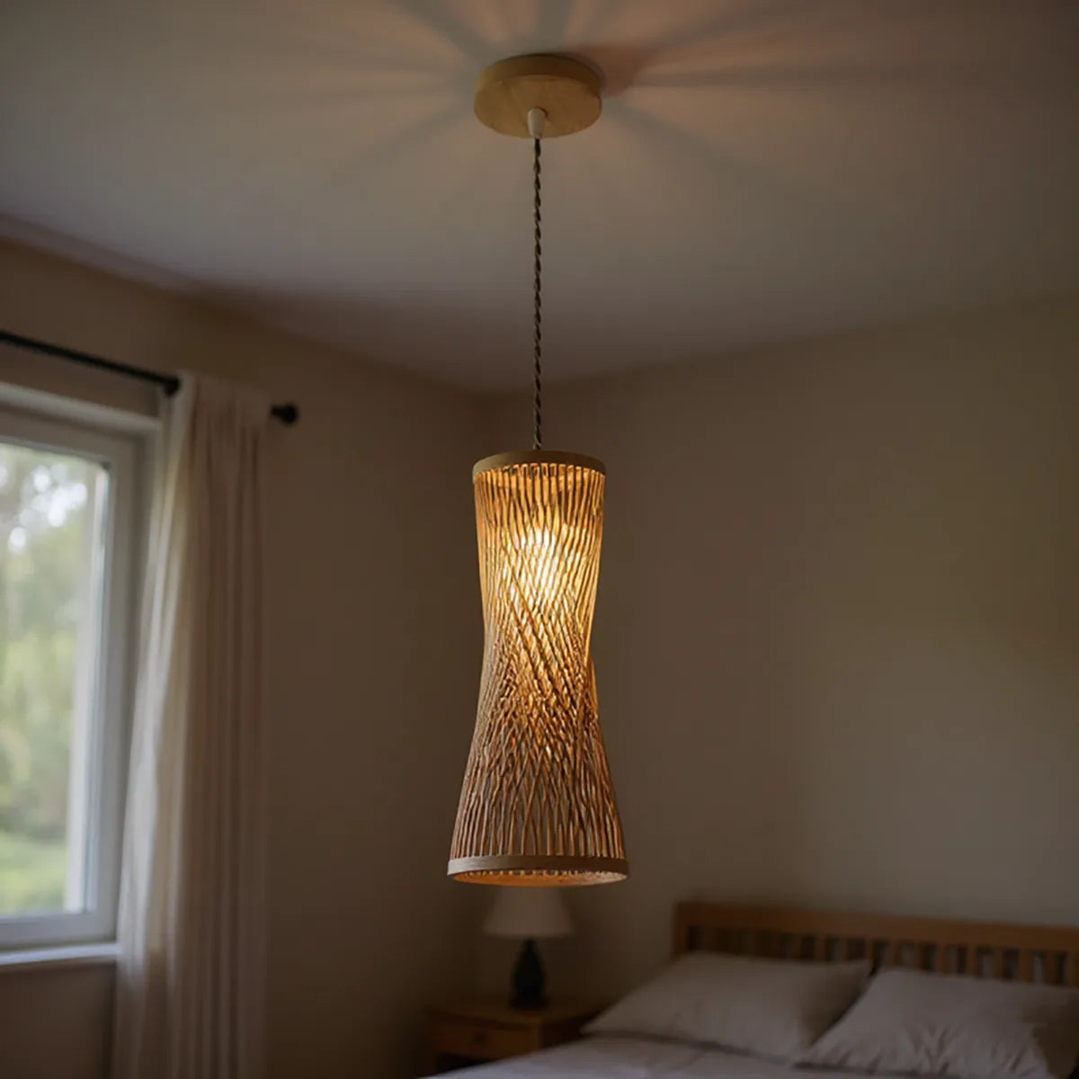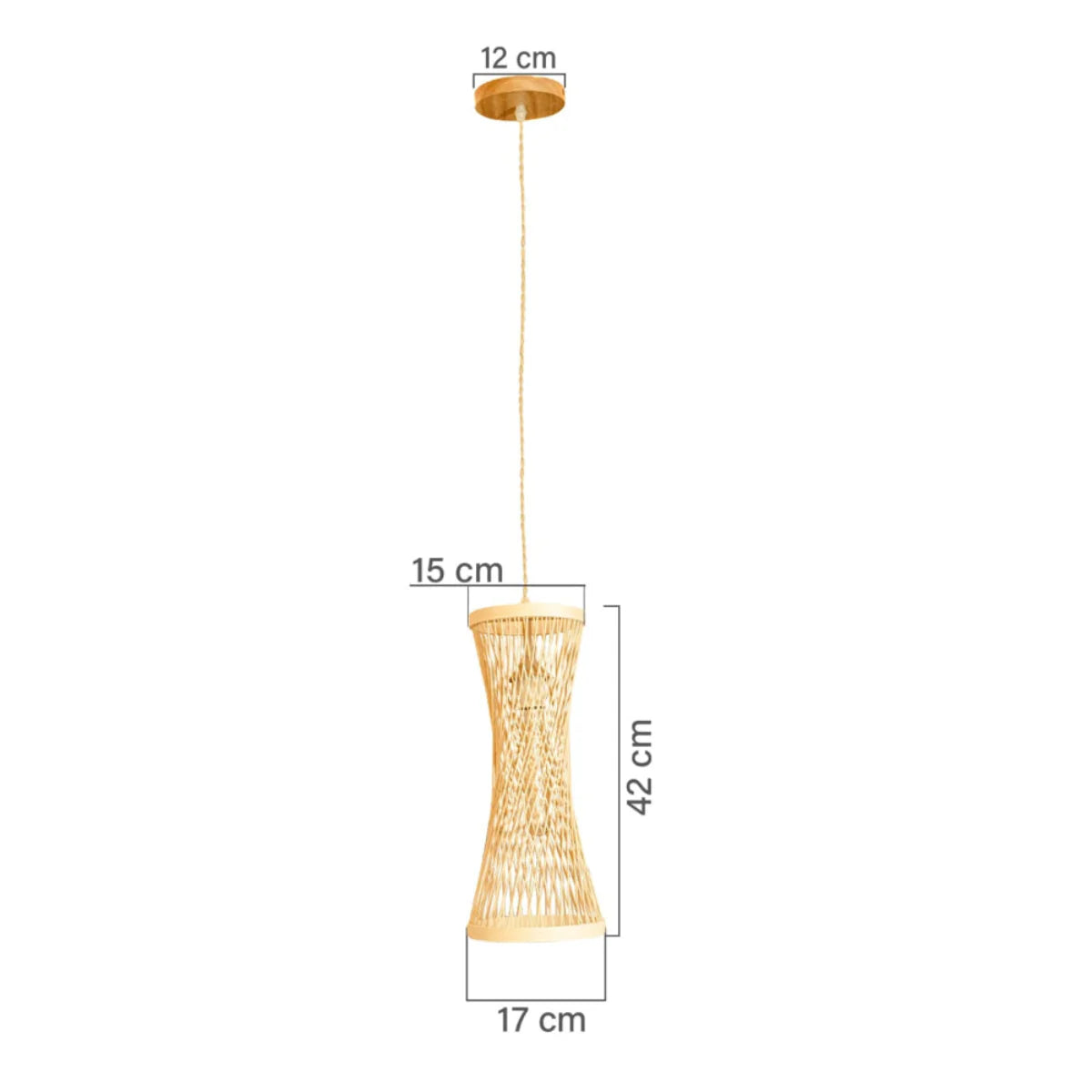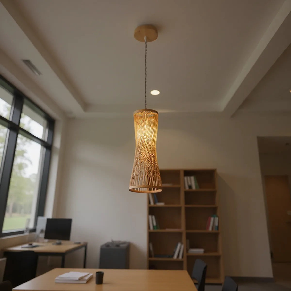 A Luminária Pendente de Bambu Suna impressiona pela sua silhueta escultural e leveza visual. Sua forma alongada e torcida projeta luz de forma sutil e sofisticada, criando um jogo de sombras que valoriza o ambiente com um toque artesanal contemporâneo. Ideal para composições em série sobre bancadas, mesas ou como destaque em pequenos espaços que pedem design e personalidade.
