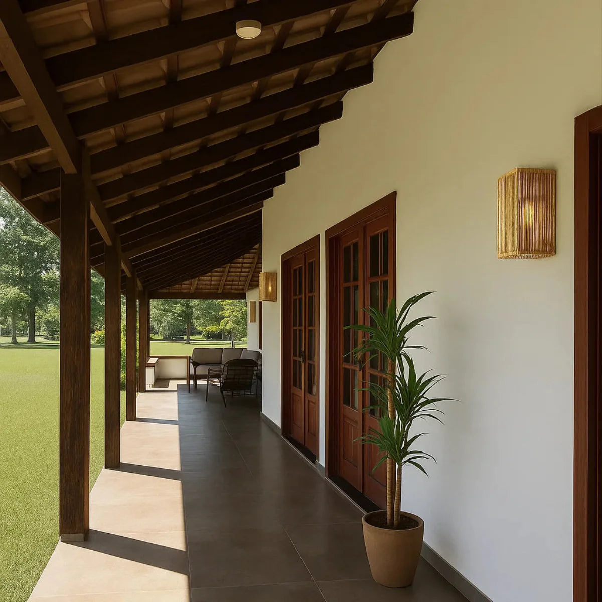 Com um design geométrico e acabamento em fibra natural, a Luminária Arandela de Palha Tanah combina leveza e estrutura de forma elegante e contemporânea. Suas linhas verticais filtram a luz criando um jogo sutil de sombras e texturas na parede, ideal para quem busca uma iluminação decorativa com alma artesanal. Perfeita para compor hall de entrada, corredores, quartos ou espaços de relaxamento com um toque natural e sofisticado.