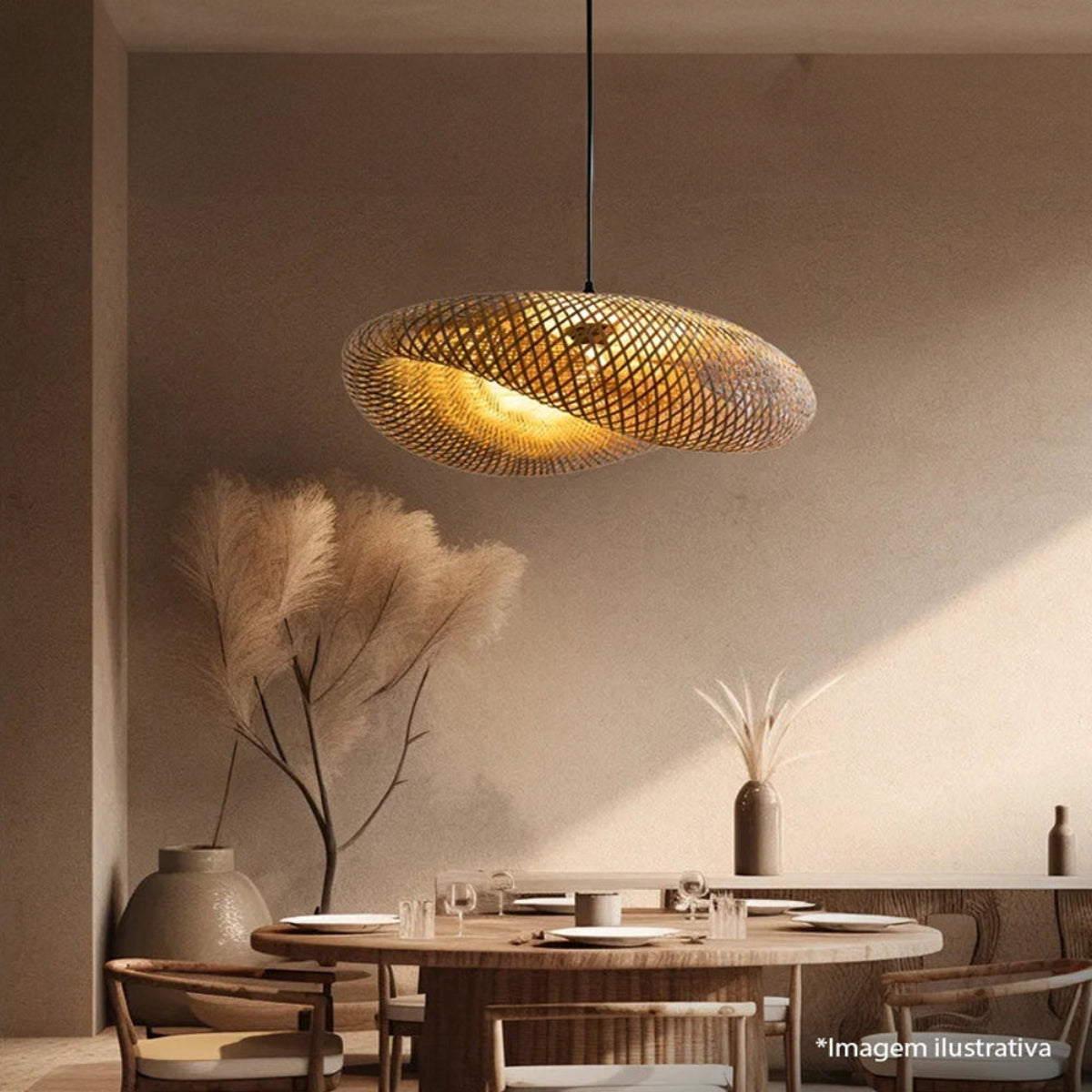 Traga a natureza para dentro de casa com esta luminária pendente de bambu natural, inspirada nas formas orgânicas e no artesanato contemporâneo. A estrutura vazada permite uma difusão suave da luz, criando padrões acolhedores que transformam o ambiente em um espaço relaxante e convidativo.