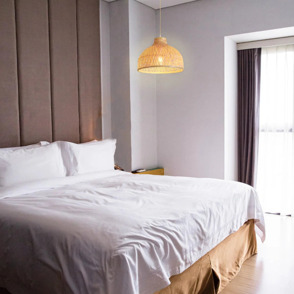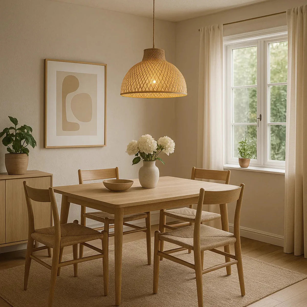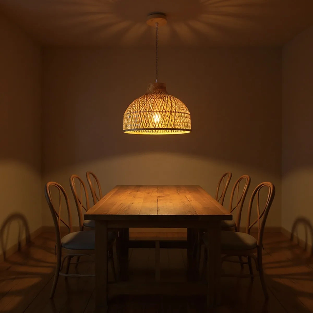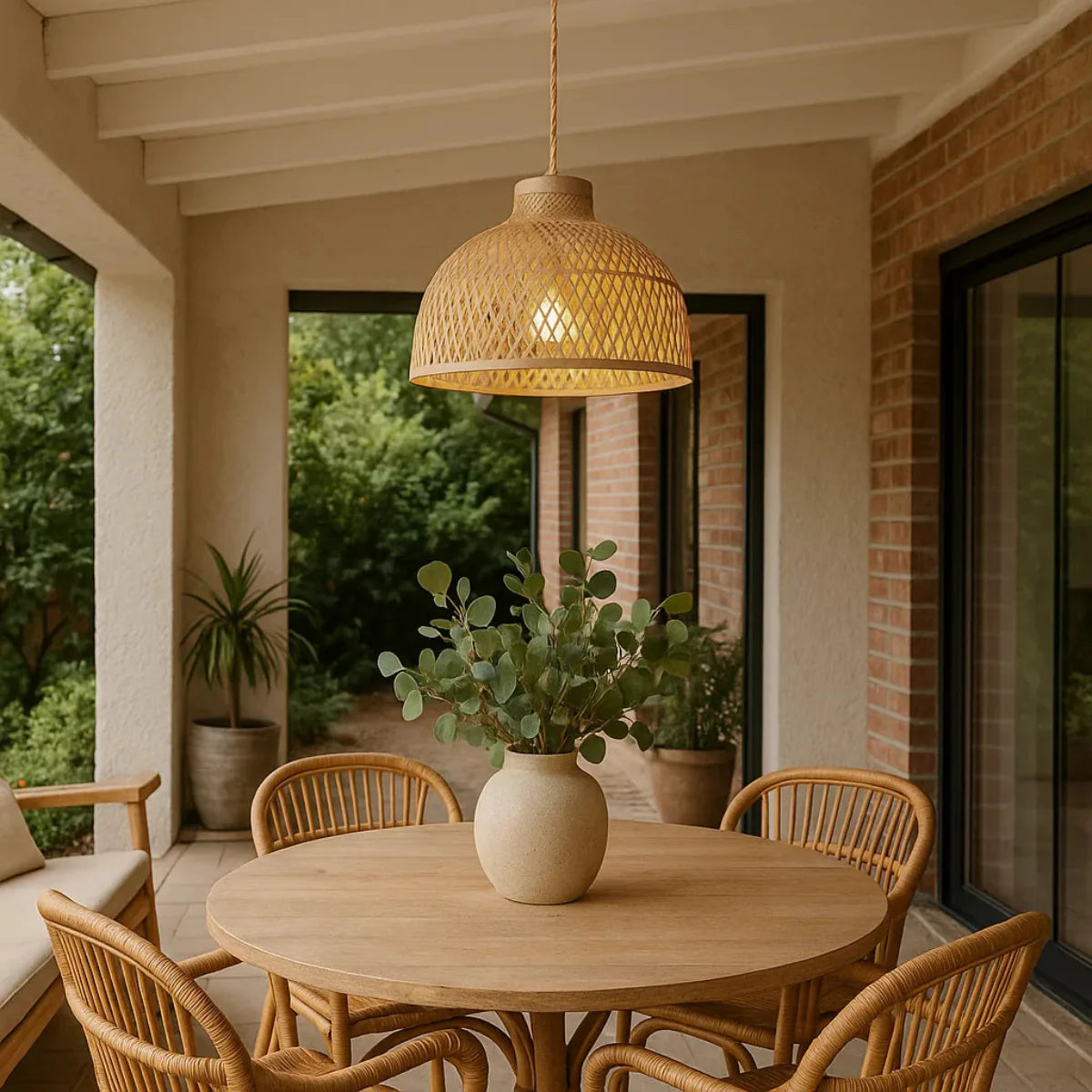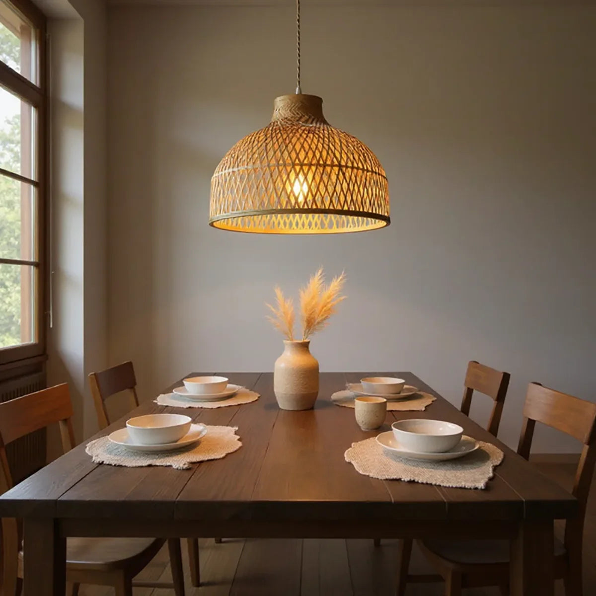 Com uma cúpula ampla e design clássico, a Luminária Pendente de Bambu Kora valoriza o feito à mão com trama entrelaçada em bambu natural. Sua silhueta suave e acabamento detalhado criam uma iluminação aconchegante e envolvente, projetando luz e sombras de forma equilibrada. Ideal para compor salas de jantar, varandas ou ambientes que pedem um toque rústico sofisticado, com alma tropical e elegância natural.