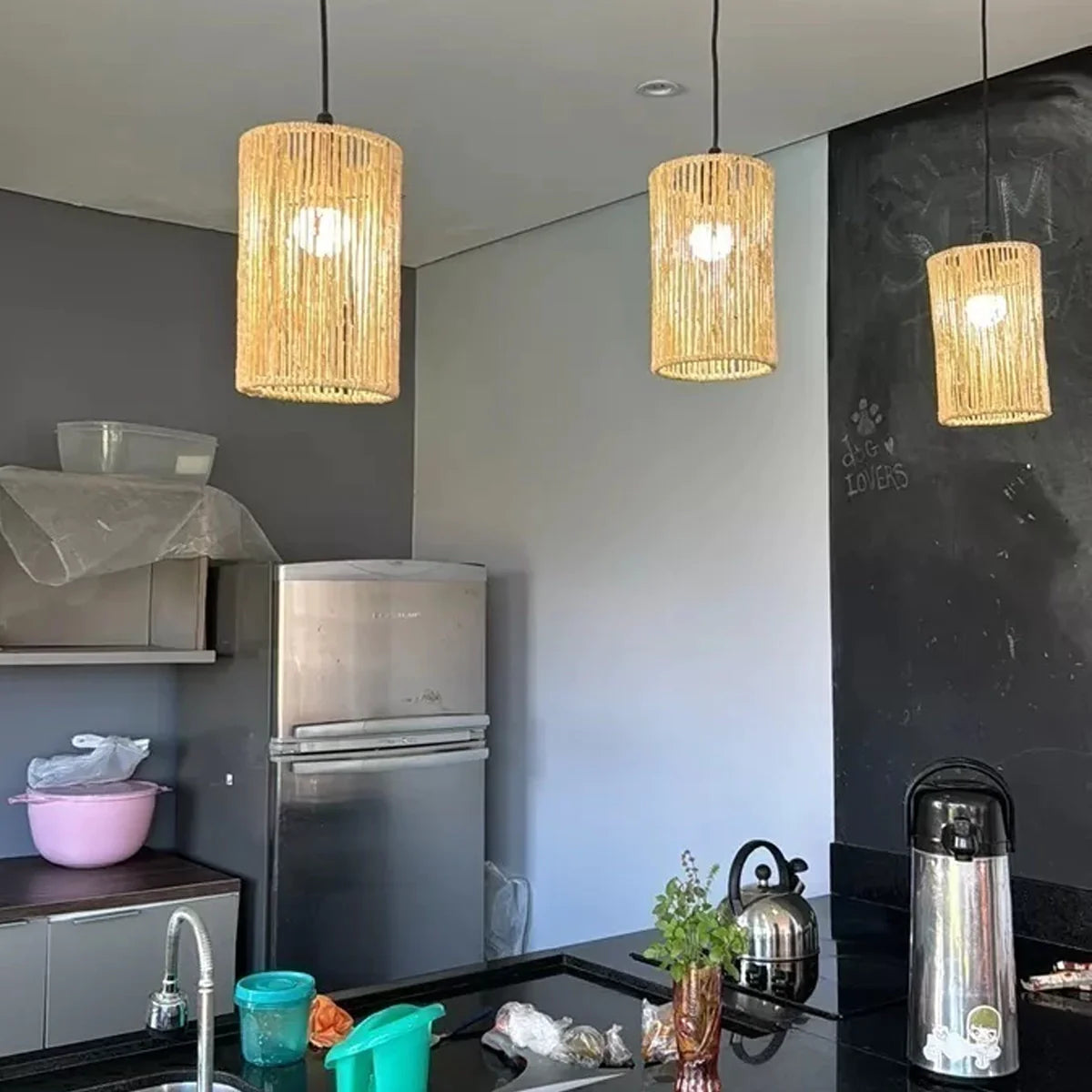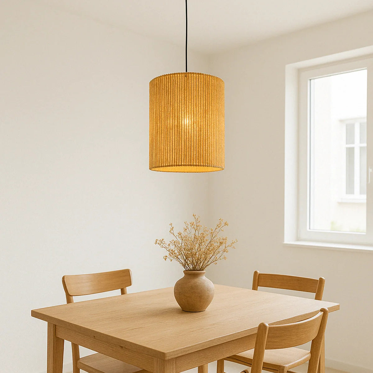 A Luminária Pendente de Palha Wasi possui uma estrutura cilíndrica e acabamento em fibras naturais que valoriza a estética minimalista com um toque artesanal. Sua trama vertical permite uma iluminação suave e uniforme, criando uma atmosfera acolhedora em salas de jantar, cozinhas, varandas ou ambientes comerciais. Uma peça que equilibra forma e função com delicadeza e estilo.