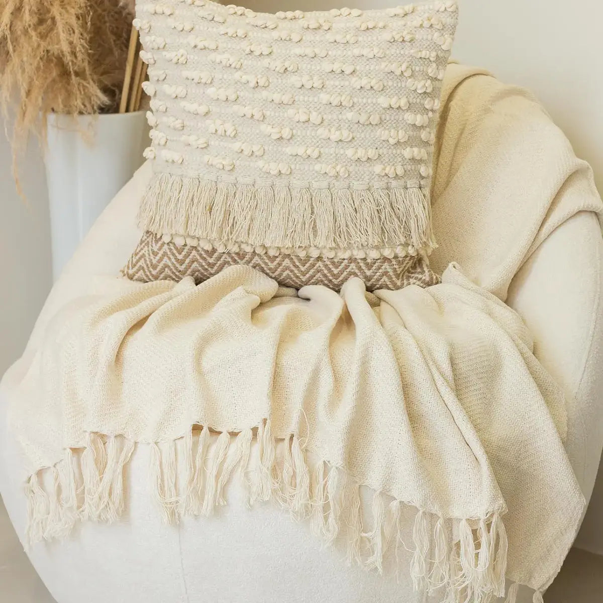 Elegância em cada detalhe. A Manta para Sofá Artesanal Algodão Duna se destaca pelo seu trançado em padrão de escamas, que adiciona textura e sofisticação ao ambiente. As franjas nas extremidades complementam o visual com um toque artesanal, tornando-a perfeita para compor sofás, poltronas ou camas com leveza e estilo. Ideal para quem busca conforto aliado a um design atemporal.