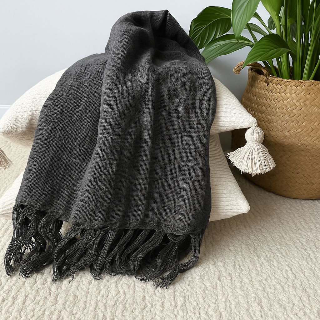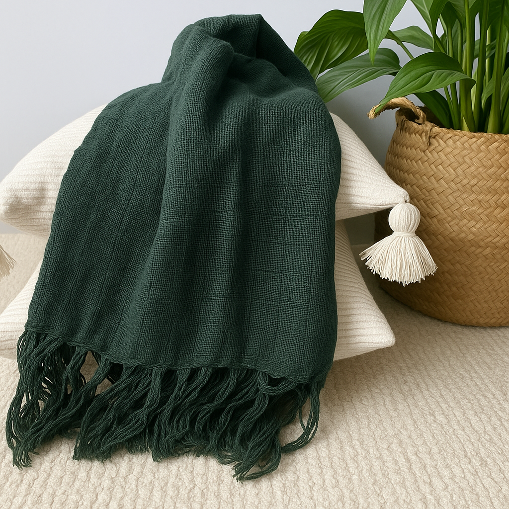 Com textura suave e caimento leve, a Manta para Sofá Artesanal Algodão Essencial é o toque de aconchego que transforma qualquer ambiente. Seu tecido delicado e acabamento com franjas adicionam charme e movimento à decoração, enquanto sua trama respirável a torna perfeita para todas as estações. Ideal para compor sofás, poltronas ou camas com estilo e conforto.