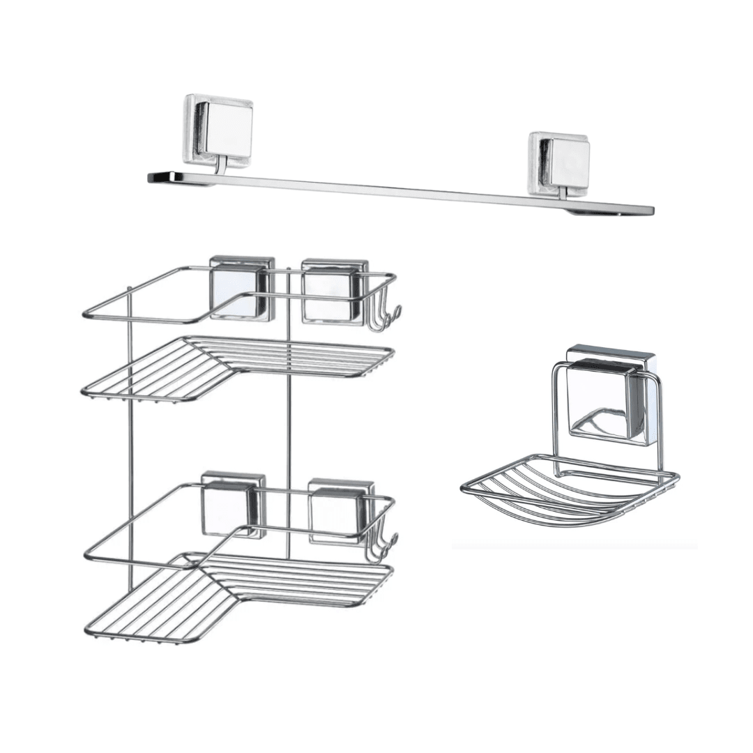 Prateleira para Banheiro de Canto Com Fixação por Sucção Ventosa - Zanatta